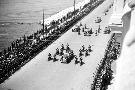 Într-una dintre poze, Hitler apare stând lângă Regele Victor Emanuel al III-lea al Italiei în timpul unei parade în Napoli. Această fotografie datează din 1938, liderul nazist luând parte la paradă după ce vizitase flota navală din Mediterana a lui Benito Mussolini.
