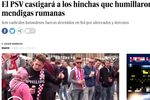 „Clubul PSV Eindhoven a anunţat că încearcă să identifice suporterii care au umilit un grup de cerşetoare din România în Madrid”, scrie ziarul spaniol El Pais.