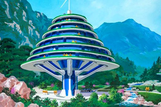 Clădirile conice, aşezate pe piloni, fabricile futuriste de mătase, care promit să unească muncitorii din zona rurală, şi camerele de hotel cu pereţi acoperiţi cu placaj portocaliu aduc aminte de stilul arhitectural al anilor ’70. „Proiectul nu şi-a propus decât să stimuleze angajamentul, ideile şi discuţiile„, spune Bonner. „Unii spun că expoziţia e retro şi kitsch, în timp ce altora li se pare amuzantă şi inventivă„, adaugă el. Proiectele realizate de arhitecţii nord-coreeni sunt expuse în pavilionul naţional de la Bienala de Arhitectură de la Veneţia.