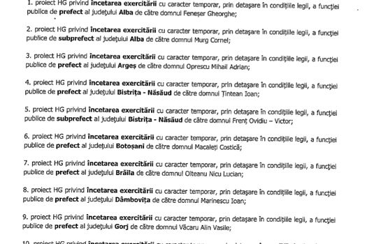 Totodată, Guvernul a decis încetarea exercitării funcţiei şi a cel puţin trei subprefecţi.