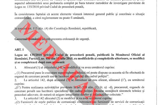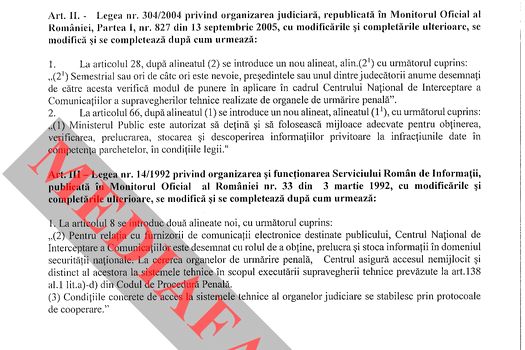 Citeşte şi: Ministrul Justiţiei: Parchetele vor folosi infrastructura SRI pentru interceptări. Ordonanţa de Urgenţă va fi avizată vineri, în CSAT
