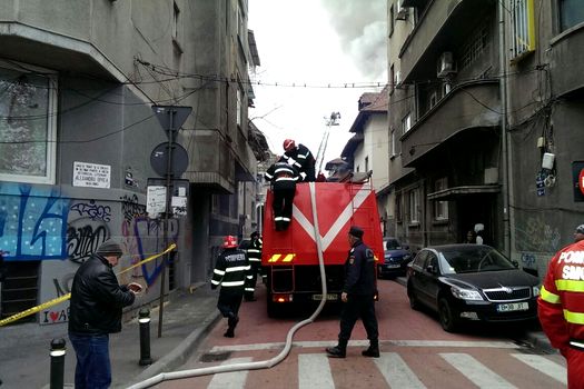Incendiul a fost localizat, însă accesul s-a făcut greu din cauza dimensiunii înguste a străzii.