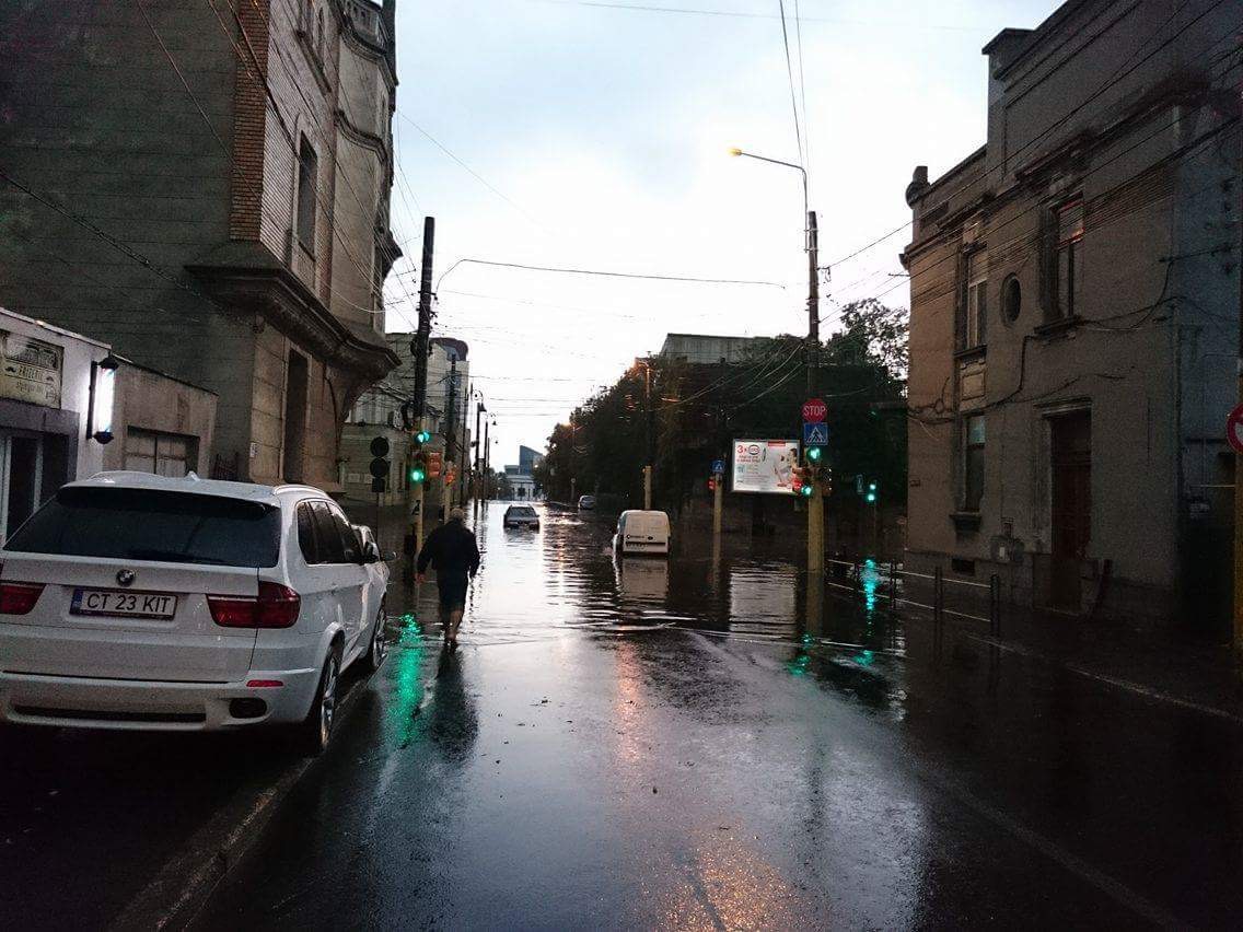 Şi în Constanţa sunt mai multe străzi inundate şi au fost semnalate zone unde, din cauza vântului, mai mulţi copaci au fost doborâţi de furtună.