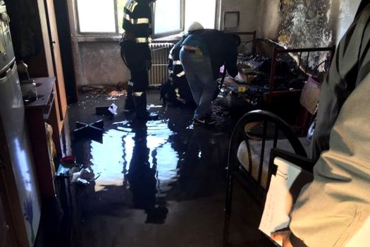 Zeci de studenţi aflaţi în cămin au fost evacuaţi de pompieri, care au reuşit să lichideze incendiul în câteva minute.