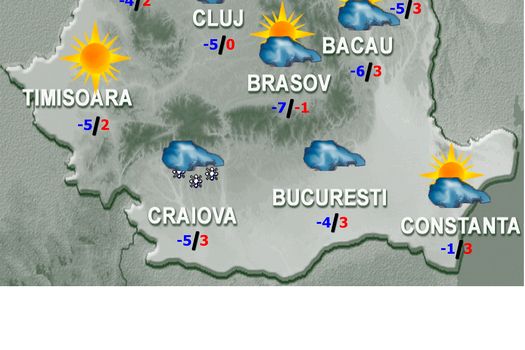 Vremea va continua să se răcească, devenind mai rece decât în mod normal la această dată. Temperatura maximă se va situa în jurul valorii de 3 grade, iar cea minimă va fi de -5…-3 grade. Cerul va fi mai mult noros pe parcursul zilei, apoi va deveni variabil. Trecător, în primele ore ale intervalului, vor mai fi condiţii de ninsoare. Vântul va sufla slab şi moderat.