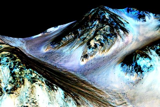 Savanţii americani sunt de părere că acele fâşii de sare hidratată – care au o culoare întunecată – ce apar pe scoarţa planetei Marte sunt în mod direct asociate cu fluxurile de apă care curg în mod periodic pe planeta roşie.