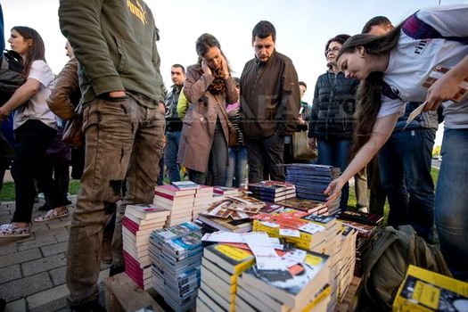 Mai departe, spre latura Casei Poporului cu Piaţa Constituţiei, un voluntar al editurii încerca să stabilească ordinea. „Vă rog, staţi pe un singur rând”, le spunea acesta oamenilor care l-au înconjurat pentru a primi cărţi. Au fost şi oameni dezamăgiţi, care s-au certat cu voluntarii pentru că ei îşi doreau alte cărţi. O doamnă trecută de 50 de ani nu era mulţumită că a primit James Joyce, voia alt titlu, dar părea să nu-i convină ceilalţi autori de pe copertele cărţilor. Până la urmă, a plecat sub umăr cu Joyce.