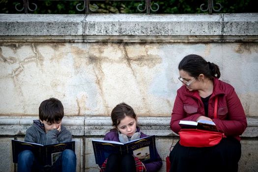 Pe iarba din faţa Parlamentului, o mamă le citea celor doi băieţi ai săi dintr-o carte pentru copii. „Suntem foarte mari fani ai cărţilor şi citim foarte mult, mai ales datorită băieţelului mai mare, dar şi cel mic o ia pe urmele lui. Suntem abonaţi la mai multe biblioteci şi urmărim orice eveniment în legătură cu cărţile”, a spus Erna pentru MEDIAFAX.