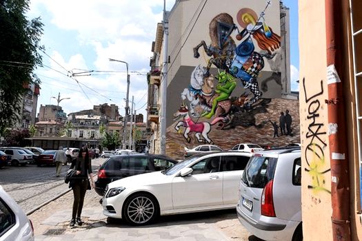 În 21 aprilie, pe una dintre clădirile din Piaţa Sfântul Gheorghe – un imobil cu apartamente, la parterul căruia se află un local – apărea o reinterpretare a luptei duse de Sfântul Gheorghe cu un balaur. Pe 11 mai, pictura, care reprezintă o interpretare modernă a scenei biblice, urmează să fie modificată sau ştearsă.