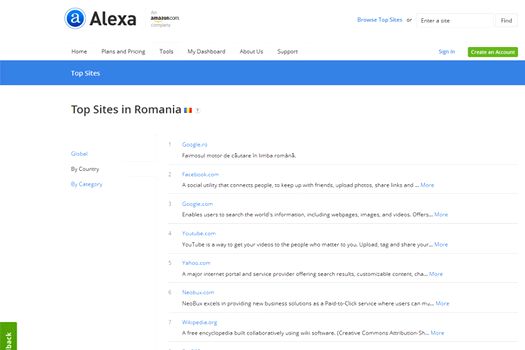 Alexa Internet este o companie deţinută de Amazon.com, care oferă informaţii referitoare la traficul web. Clasamentul global al site-urilor, topurile naţionale şi cele pe categorii arată cât de bine sunt cotate paginile de Internet. Alexa.com clasifică site-urile cu ajutorul unui algoritm care combină media vizitatorilor unici pe zi cu numărul vizualizărilor paginii în ultimele trei luni.