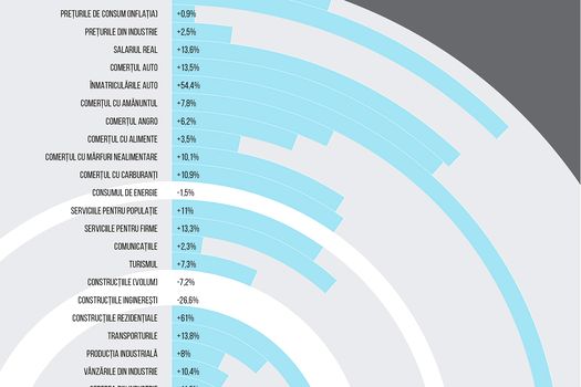 Majoritatea sectoarelor economice au avut creşteri cu două cifre, ca în anii de „boom” 2007-2008, în primul semestru din acest an, cele mai puternice avansuri fiind consemnate la construcţiile rezidenţiale (+61%), înmatriculările auto (+54,4%) şi comerţul online (+29,1%).