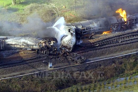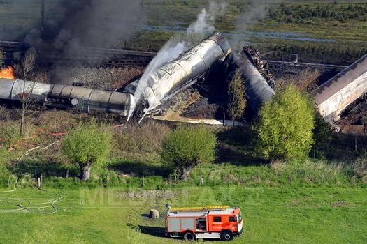Flăcările au cuprins trei cisterne care transportau acrilonitril, o substanţă toxică. Autorităţile au declanşat un plan de urgenţă şi au evacuat aproximativ 500 de persoane.