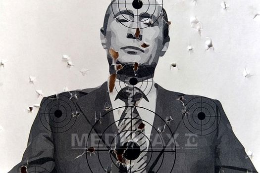 Fotografiile care înfăţişează faţa preşedintelui rus atinsă de gloanţe au apărut în contextul în care criza a luat amploare în estul Ucrainei, iar confruntările dintre insurgenţii proruşi şi forţele ucrainene s-au soldat cu 2.600 de morţi din aprilie.