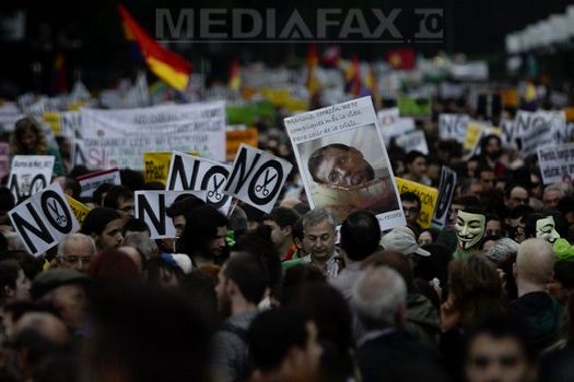 „Niciun pas înapoi, împotriva reformelor, grevă generală”, strigau liceenii în manifestaţia de la Madrid, unde s-au adunat zeci de mii de persoane în pofida ploii.