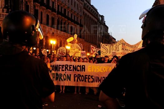 Protestatarii au răspuns scandând, în unele ocazii, „Pederaştilor, atenţie la copii” sau „Papa este un nazist„.
