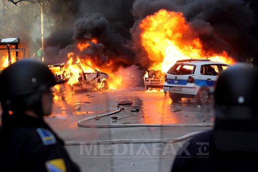 La Sarajevo, o mie de „protestatari au spart ferestre şi au incendiat gheretele gardienilor şi sediul” unei clădiri a administraţiei regionale, a anunţat postul naţional de televiziune.