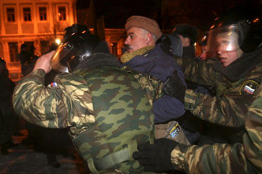 Potrivit poliţiei, citată de agenţia Interfax, 34 de persoane au fost reţinute în cursul acestei manifestaţii care a reunit aproximativ 200 de persoane.