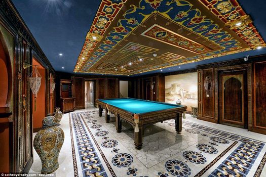 În prezentarea palatului, compania care se ocupă de vânzarea imobilului, International Realty Sotheby, scrie: „Interioarele amintesc de palatele baroce. Camerele au o mulţime de aur, piatră naturală şi lemn preţios. În unele camere podelele sunt realizate din marmură naturală, iar sala de biliard şi biblioteca sunt din stejar masiv şi mahon”.
