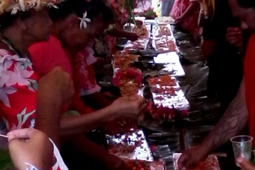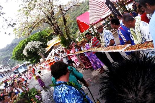 Peste 200 de persoane din această insulă a arhipelagului Îles-Sous-le-Vent au pregătit pentru acest fel de mâncare 150 de kilograme de ton proaspăt, pe care l-au aromatizat cu vanilie, potrivit obiceiurilor locale. Tonul a fost aşezat pe platouri, care au fost puse cap la cap, iar un consilier municipal a măsurat preparatul culinar.