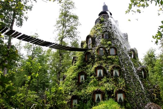 Tot în Chile se găseşte acest hotel desprins parcă din basme, iar ceea ce îl scoate în evidenţă, pe lângă aspectul feeric, este faptul că nu există o intrare normală pentru turişti. Aceştia trebuie să treacă peste un pod din lemn pentru a intra în incintă.