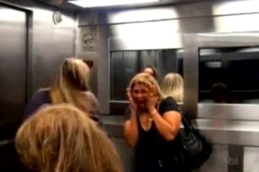 Deja deranjaţi de „defectarea liftului”, în momentul în care luminile se aprind şi văd „fantoma”, oamenii reacţionează isteric, plângînd în hohote, ţipând sau încercând să iasă din lift.