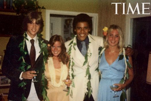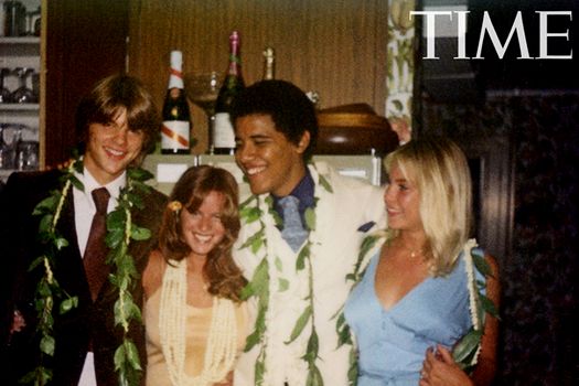 În cele două fotografii publicate de revista Time, Barack Obama, pe atunci în vârstă de 17 ani, poartă o coafură afro şi o haină albă. El apare alături de bunul său prieten din acea vreme Greg Orme şi de iubitele lor din liceu, Megan Hughes şi Kelli Allman.