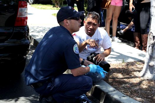 Mai mulţi martori au spus că un avocat a venit la faţa locului şi l-a sfătuit pe acel paparazzo să telefoneze la serviciul de ambulanţă şi să întocmească o plângere la poliţie.