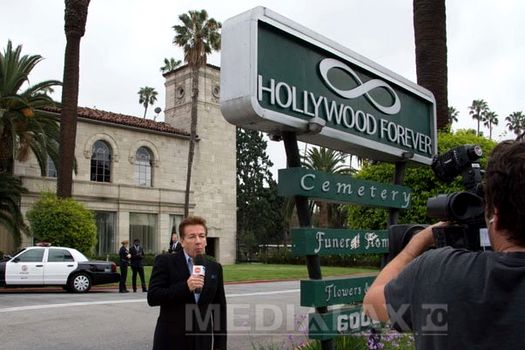 Ceremonia a avut loc la Hollywood Forever Cemetery, unde sunt înmormântate şi alte vedete, precum Jayne Mansfield şi Douglas Fairbanks.