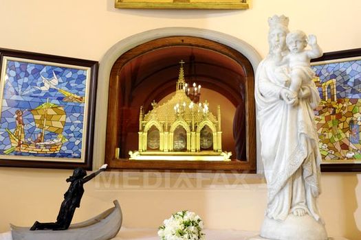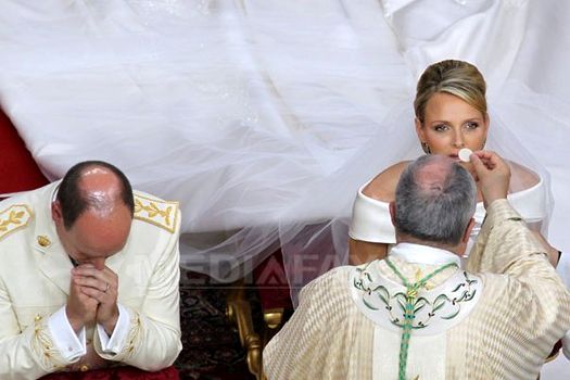 În capelă, cuplul a ascultat din nou muzică religioasă corală, a fost rostită o rugăciune, iar mireasa a izbucnit în lacrimi. Prinţesa şi-a depus apoi buchetul de mireasă la picioarele unei statuete reprezentând-o pe Fecioara Maria, ca un omagiu adus acesteia, aşa cum cere tradiţia la Monaco.