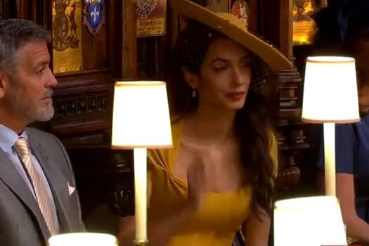 Mulţimea adunată în faţa capelei i-a primit cu urale pe avocata Amal Clooney şi soţul acesteia, starul hollywoodian George Clooney, ea îmbrăcată într-o rochie galben muştar, el, într-un costum gri.