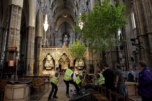 Copacii au fost instalaţi de-a lungul culoarului din Westminster Abbey, iar invitaţii vor trebui să treacă pe sub ei pentru a-şi ocupa locurile. Fiecare copac a fost pus în ghivece create de Shane Connolly, designerul floral al viitoarei prinţese.