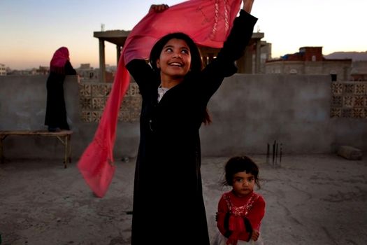 Fotograf: Stephanie Sinclair. O fetiţă de zece ani dansează fericită după ce soţul său mai mare i-a acordat divorţul.