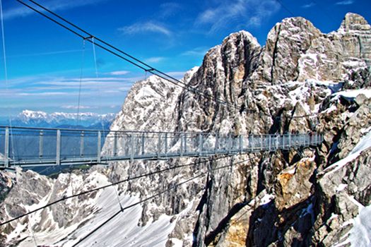 Gheţarul Dachstein le oferă turiştilor posibilitatea să admire piesajele montane de pe un pod suspendat la o înălţime de 400 de metri. De asemenea, cei mai curajoşi turişti pot păşi pe „scara către nicăieri”, o platformă construită din sticlă pe care aceştia se pot simţi cu adevărat liberi, se arată pe site-ul locaţiei.