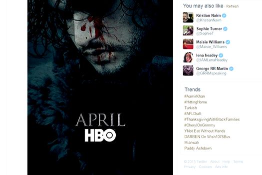Mesajul publicat pe contul de Twitter al serialului „Game of Thrones” a fost distribuit de peste 35.000 de ori în primele trei ore, luni, iar „Jon Snow” a devenit principalul subiect dezbătut pe Twitter.