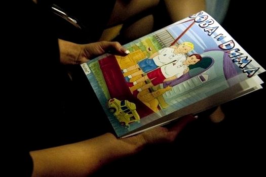 „Cartea de colorat despre Vova şi Dima (diminutive ale prenumelor Vladimir şi Dmitri) va fi vândută în principalele librării din Moscova”, a declarat Vladimir Tabak, în cursul unei conferinţe de presă.
