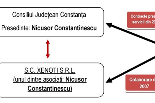 „Astfel, prin încheierea acestui contract, s-a creat un folos patrimonial, în valoare de 22.000 lei, în favoarea SC Xenoti SRL, societate comercială ce a asigurat, cu ocazia evenimentului menţionat, servicii de cazare la Complexul «Flora» din Mamaia, şi în cadrul căreia Constantinescu Nicuşor Daniel deţine calitatea de asociat. Anterior, în anul 2007, SC Icar Tours Constanţa SRL a încheiat cu SC Xenoti SRL – Complex «Flora» Mamaia un contract de prestări servicii hoteliere pe durată nedeterminată. Astfel, pentru efectuarea plăţilor, Constantinescu Nicuşor Daniel, în calitate de Preşedinte al CJ Constanţa şi ordonator principal de credite, a semnat documentele financiar-contabile constând în cinci ordonanţări de plată, două angajamente bugetare şi două propuneri de angajare”, se arată într-un comunicat de presă al ANI, transmis marţi agenţiei MEDIAFAX.