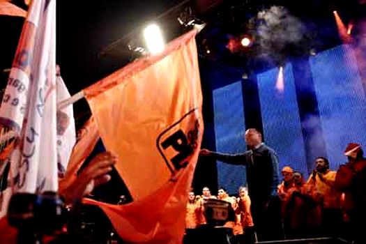 Câteva mii de militanţi PDL s-au strâns, vineri, în ultima zi de campanie, în faţa Ateneului Român, îmbrăcaţi în geci portocalii şi fluturând steaguri cu tricolorul şi cu sigla Partidului Democrat Liberal, dar şi steguleţe cu imaginea preşedintelui Traian Băsescu.