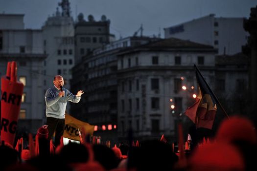 „Cu Geoană şi PSD, ne întoarcem în RSR”, „Oameni, nu trucaje” şi „Juraţi că ne veţi scăpa de ei” au fost mesajele pe care Traian Ungureanu le-a transmis de pe scena de la Ateneu, în aplauzele militanţilor.