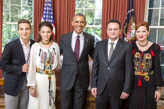 La ceremonia de la Casa Albă, ambasadorul George Cristian Maior a fost însoţit de soţia sa şi cei doi copii.