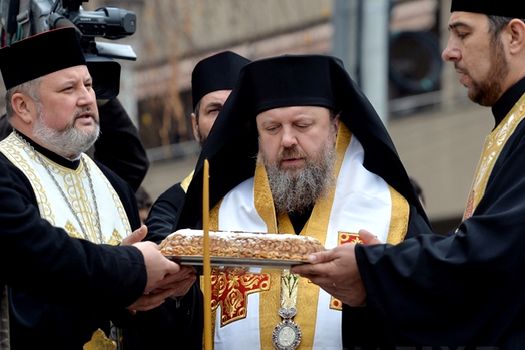 Preasfinţitul Părinte Timotei Prahoveanul, episcop-vicar al Arhiepiscopiei Bucureştilor, înconjurat de preoţi şi diaconi, a oficiat, miercuri, slujba parastasului de 40 de zile pentru cei 60 de morţi din Colectiv.