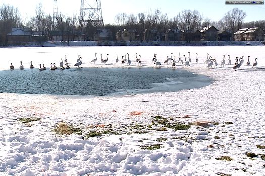 Un număr de 80 de lebede aciuate pe o baltă din Galaţi sunt în pericol să moară din cauza frigului şi a lipsei hranei, iar voluntarii încearcă să le salveze, aruncând-le periodic mâncare. Păsările s-au adunat pentru iernat într-o zona retrasă, pe un ochi de apă format pe terenul Portului Mineralier.