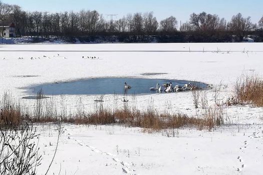 80 de lebede care nu au migrat în ţările calde, în pericol să moară de foame şi frig. Voluntarii dintr-un judeţ încearcă să le salveze | FOTO