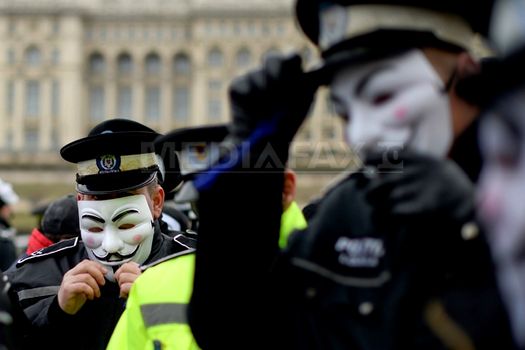 Aceştia au avut pe faţă măşti Anonymous şi au scandat „Domnul Oprea, nu uita, şi Locala e a ta”, aceeaşi lozincă fiind adaptată şi pentru premierul Victor Ponta şi ministrul Liviu Dragnea.