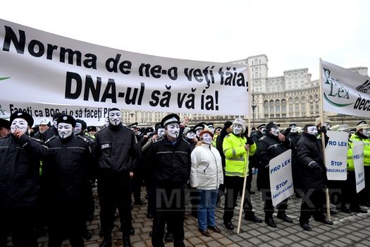 Protestatarii au avut bannere pe care scria „SOS poliţistul român”, „Mai bine nu mai furaţi, decât hrana să ne-o tăiaţi”, „Nu ne putem risca viaţa, integritatea şi libertatea pentru 700 de lei pe lună” şi „Semănaţi tăieri, culegeţi haos”.