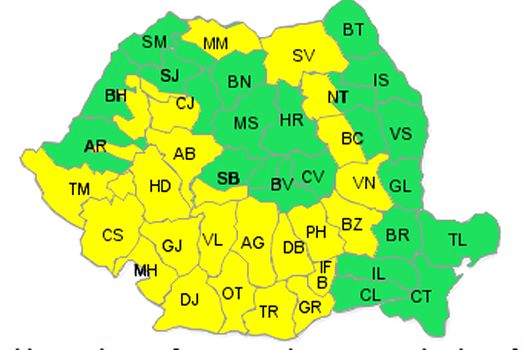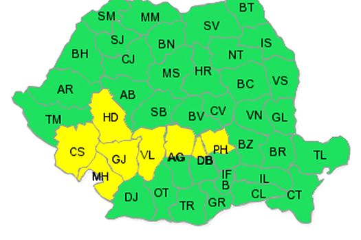 De asemenea, vor fi sub avertizare şi Caraş-Severin, Hunedoara şi Timiş şi, parţial, Sibiu, Alba, Arad, Cluj, Bihor, Sălaj şi Maramureş.