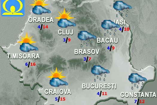 Vineri vremea se va menţine rece pentru această perioadă, cu precădere în jumătatea de est a teritoriului, informează Administraţia Naţională de Meteorologie. Cerul va fi mai mult noros şi temporar va ploua în jumătatea de est a ţării, unde pe arii restrânse cantităţile de apă vor depăşi 20…25 l/mp, în special în nordul Moldovei. În restul teritoriului înnorările vor fi temporare, iar ploile se vor semnala pe arii restrânse, mai ales ziua. În zona montană, cu precădere a Carpaţilor Orientali, vor predomina ninsorile. Vântul va sufla slab şi moderat, cu unele intensificări în regiunile vestice şi sud-vestice, precum şi în cele estice şi la munte. Temperaturile maxime vor fi cuprinse între 3 grade în estul Transilvaniei şi 16 grade în Banat şi în vestul Olteniei, iar cele minime se vor încadra între 0 şi 7 grade. Spre dimineaţă vor fi condiţii de brumă.