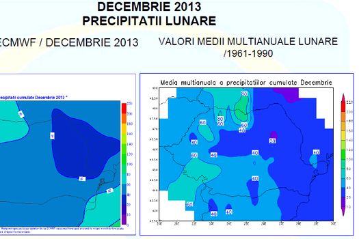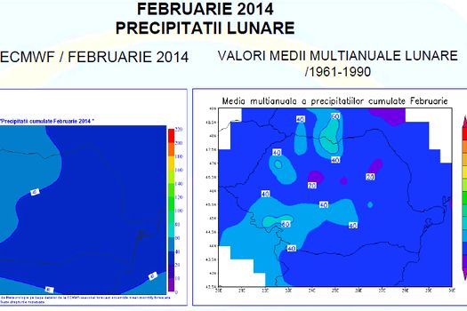 Cantităţile lunare de precipitaţii se vor situa peste media climatologică în centrul şi sud-estul ţării şi apropiate de normalul perioadei în celelalte regiuni.