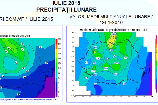 Cantităţile lunare de precipitaţii vor fi în general deficitare, exceptând zonele centrale şi vestice, unde acestea vor fi apropiate de normele climatologice.