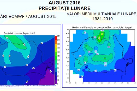 Cantităţile lunare de precipitaţii vor înregistra valori sub mediile climatologice în aproape toata ţara.