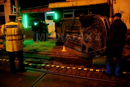 Renaultul a fost răsturnat pentru a-l scoate de sub maşină pe bucureşteanul blocat. Poliţia a înregistrat cazul, luând număr unic de la Parchetul Tribunalului Bucureşti.